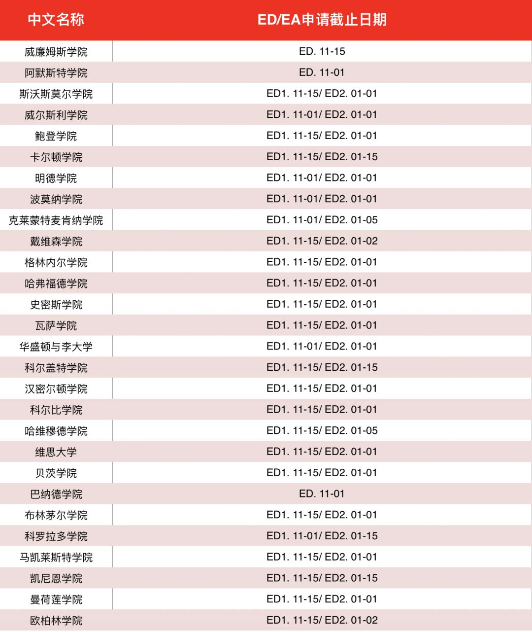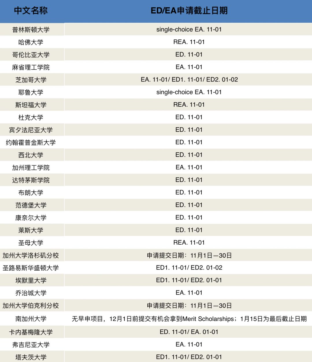 DEADLINE步步紧逼,请看美国顶尖大学ED/EA申请的截止日期啦!这里是美国排名前50名的综合大学+排名前30名的文理学院,抓紧时间千万不要错过你心爱的学校啊。