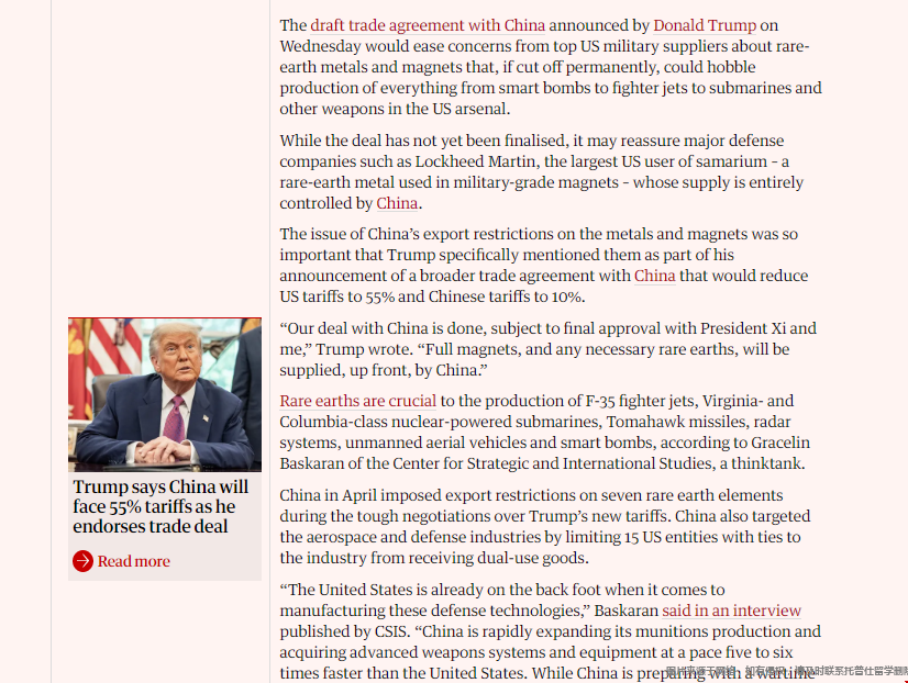 首先,根据以上,特朗普嘴里的“我们将履行对中国学生的承诺”,听起来仿佛是在维护留学生权益。实际上,这只是他用人换货、用签证换稀土的谈判话术。