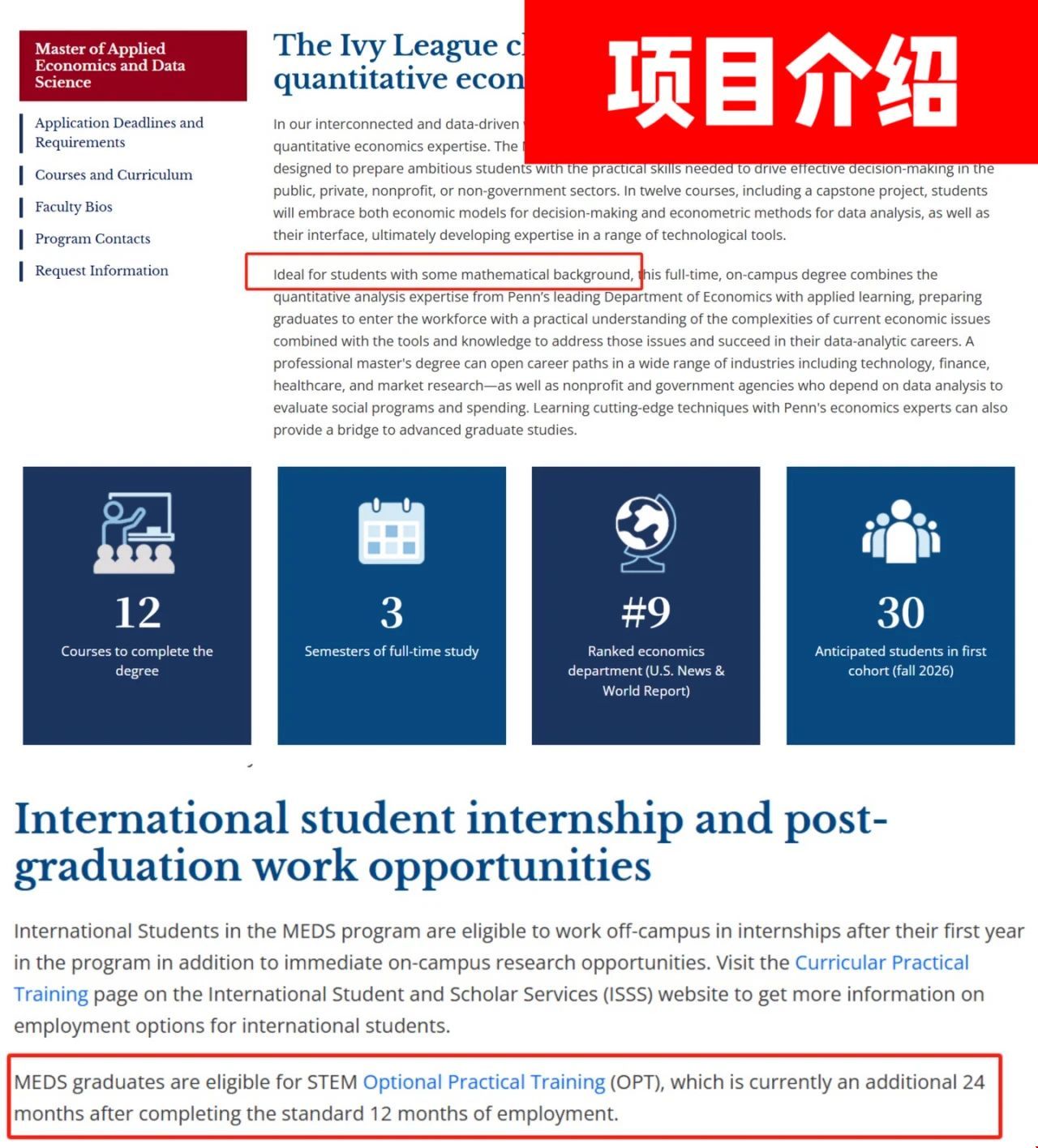 Upenn此次新开设的应用经济学与数据科学硕士项目2026秋季首届招生,要求申请者具有一定的经济学、数学和编程基础(需在文书中展示代码成果),可见课程硬核、专业性强。