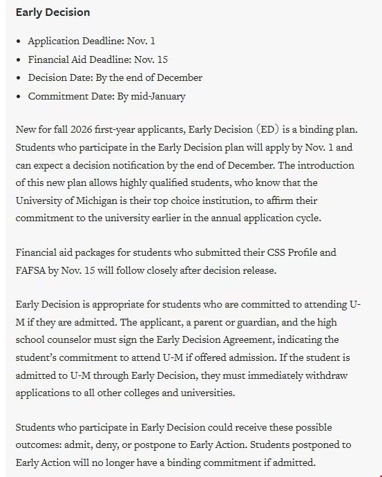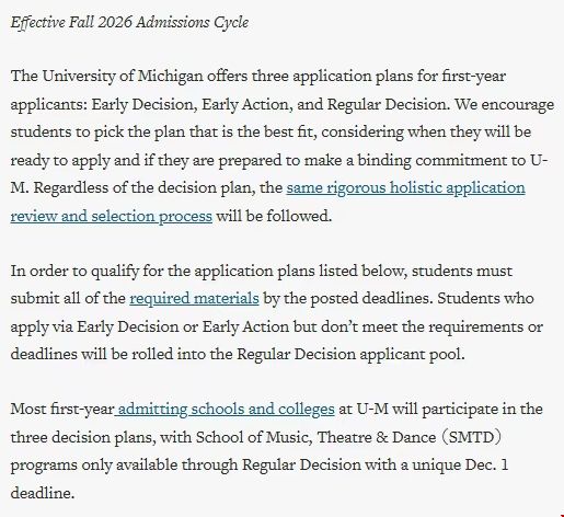 此项措施旨在为将UMich视为第一选择的申请人提供更早获取录取结果的途径。