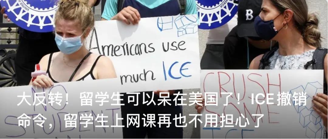 美国移民与海关执法局(ICE)不得不取消了驱逐留学生的政策(详情点击下面图片跳转阅读)前不久移民与海关执法局(ICE)因为禁止纯网课留学生留在美国而遭到哈佛、麻省等众多高校起诉,最终取消政策,托普仕A...
