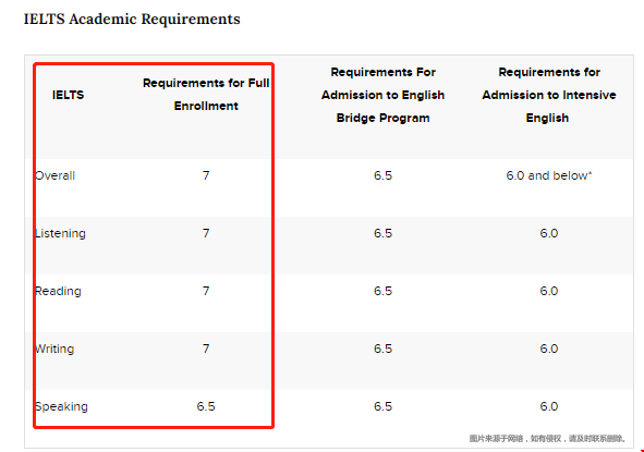 官网表示:“The Graduate School requires an overall band score of a 7.0 or higher on the IELTS Academic exam. ”