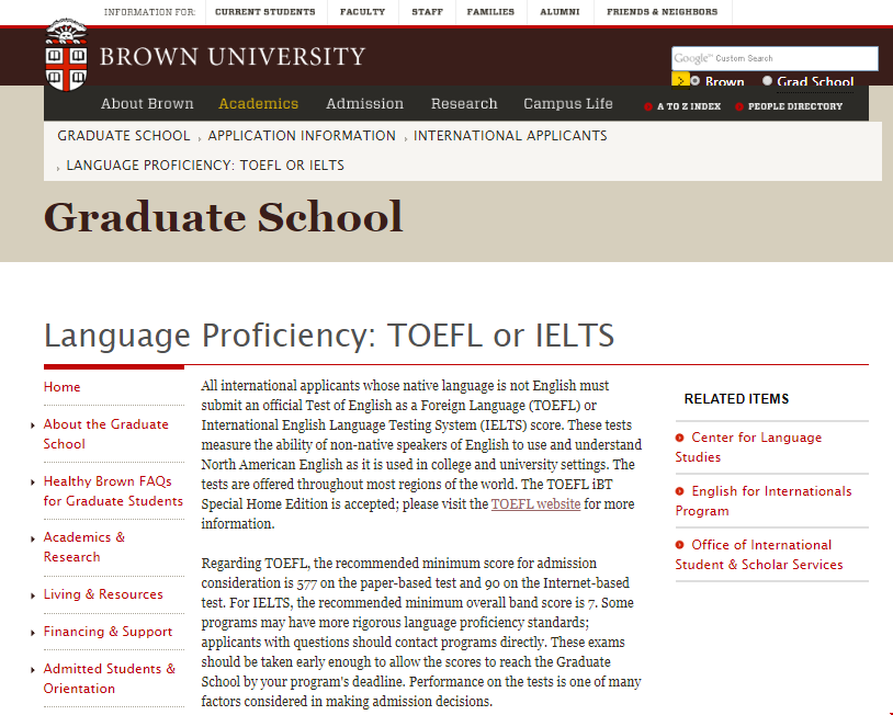 1、布朗大学研究生雅思要求:最低7分