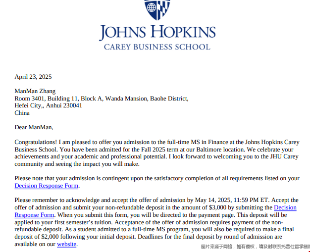 (港都会本科-Z同学,gpa3.4+,成功申到JHU金融硕士)