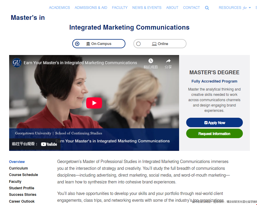 以上是关于乔治城大学整合营销专业申请要求的全部介绍,想要了解更多相关内容,欢迎您在线咨询托普仕留学老师。托普仕留学专注美国TOP30名校申请,采用5v1服务模式,21步精细服务流程,硬性四维标准+六维背景提升等留学服务体系,为学生申请美国名校提供保障。
