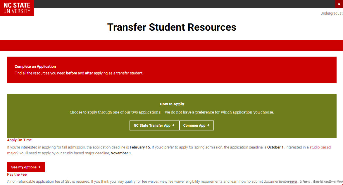 2026秋季北卡罗来纳州立大学转学申请条件: