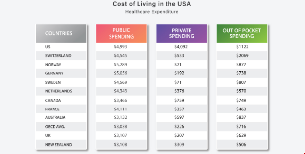 美国的医疗保健系统是一流的,但是如果没有适当的健康保险,您的医疗费用将非常高。对于正常的医生检查,费用可能在100-200美元之间,一周的感冒药费用可能在10-30美元左右,而抗生素则在6-10美元之间。在美国,一个人每月支付400-500美元的保险费,但要取决于所采取的保险类型。