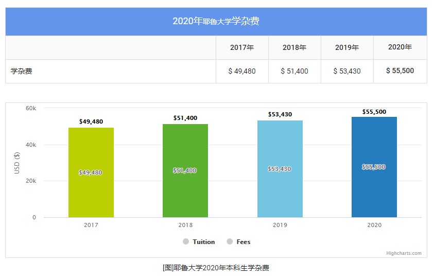 耶鲁大学学费总花费是76,645美元,2019-2020学年,耶鲁大学本科的学杂费为$ 55,500。研究生院的学杂费为$ 43,300。除学杂费外的生活费用为20,095美元。下面托普仕Alice老...