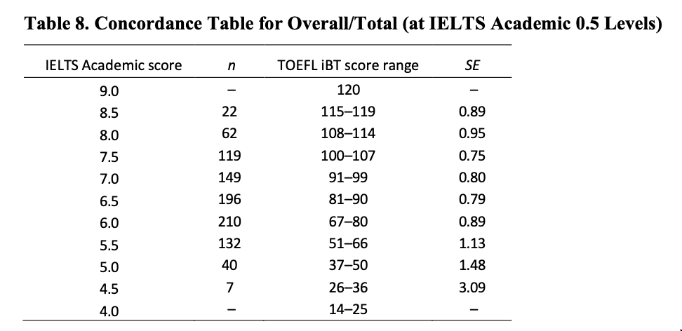 雅思7分现对应托福91-99分区间,首次明确低于托福百分大关;