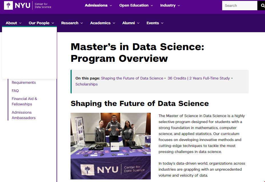 NYU DS项目是一个高度选择性的课程,它专为在数学,计算机科学和应用统计学方面有坚实基础的学生设计。我们的课程侧重于开发创新方法和尖端技术,以解决数据科学中最紧迫的挑战。
