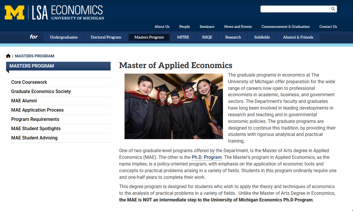 一、密歇根大学安娜堡分校经济学硕士学制