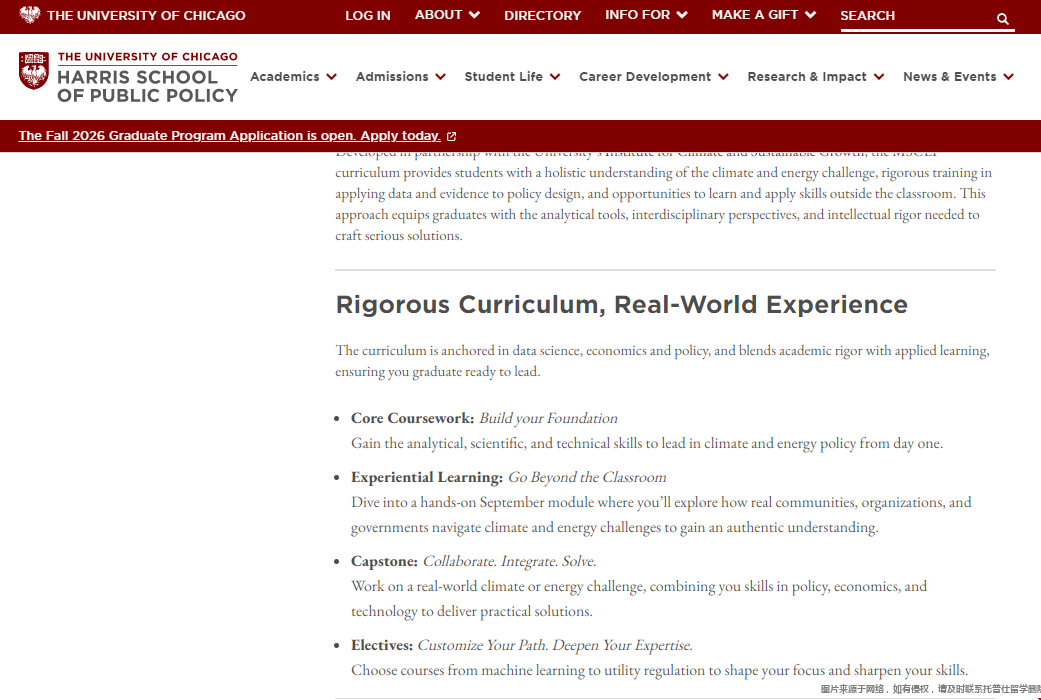 芝加哥大学MSCEP项目课程是与牛津大学气候与可持续增长研究所合作开发的,为学生提供了对气候和能源挑战的全面理解,在将数据和证据应用于政策设计方面进行了严格的培训,并为学生提供了在课堂外学习和应用技能的机会。这种方法为毕业生提供了分析工具、跨学科的视角和制定严肃解决方案所需的智力严谨性。