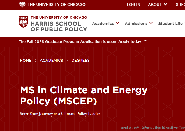 芝加哥大学气候与能源政策理学硕士(MSCEP)是一个为期一年的全日制研究生课程,旨在培养气候科学、能源技术、数据科学、经济学和公共政策交叉领域的未来领导者。