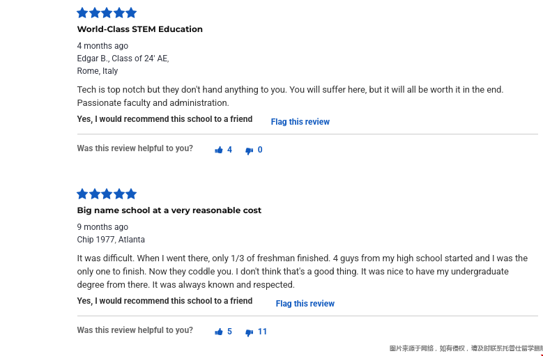 Georgia Tech被普林斯顿评论誉为第一最具价值公立学府,还获得职业规划、实习和校友网络等诸多领域的好评,可见该机构对佐治亚理工认可度有多高。