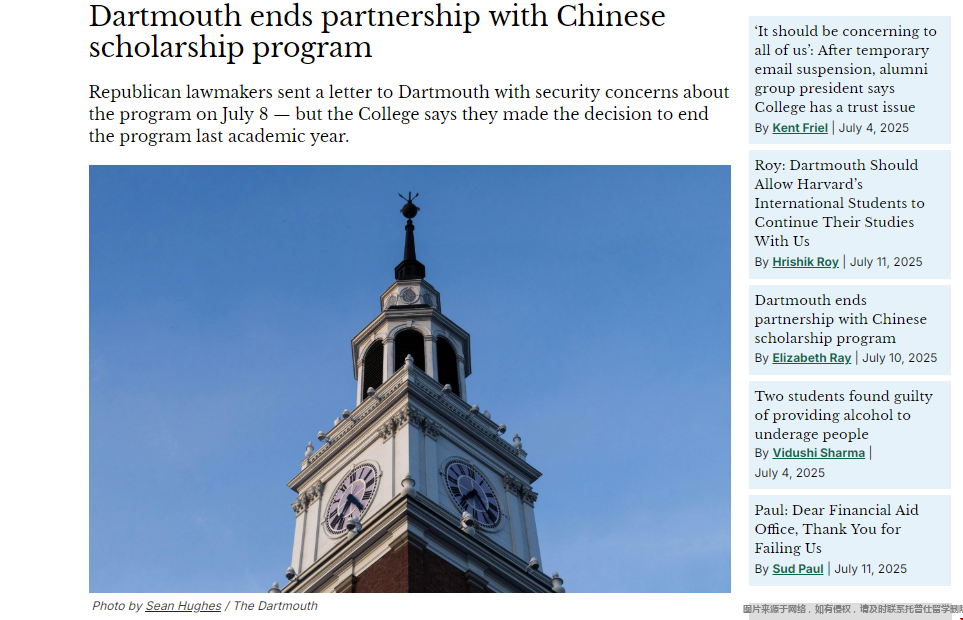 一、最新消息!达特茅斯学院终止与中国奖学金项目的合作
