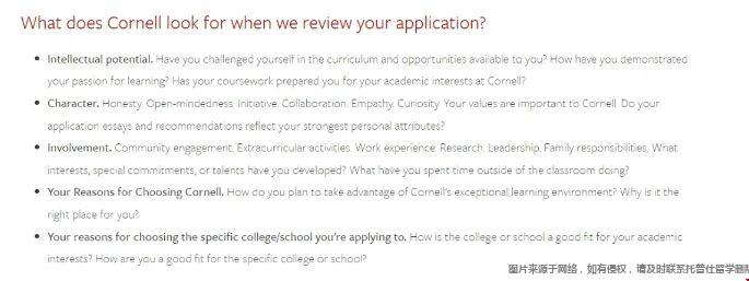 康奈尔大学官网也明确表达了在审核申请时会关注的重要因素: