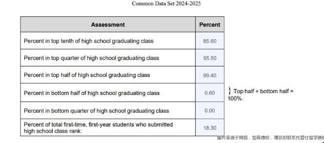 85.6%的学生在高中班级中排名前10%,95.5%的学生在高中班级中排名前25%。
