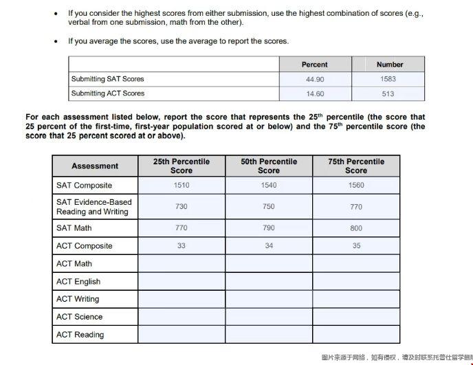 如果你的SAT或ACT分数在这个区间之内或者更高,才能在众多申请者中保持竞争力。