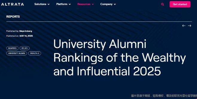 近期,美国数据咨询机构Altrata发布了《2025全球大学校友财富和影响力排名》。