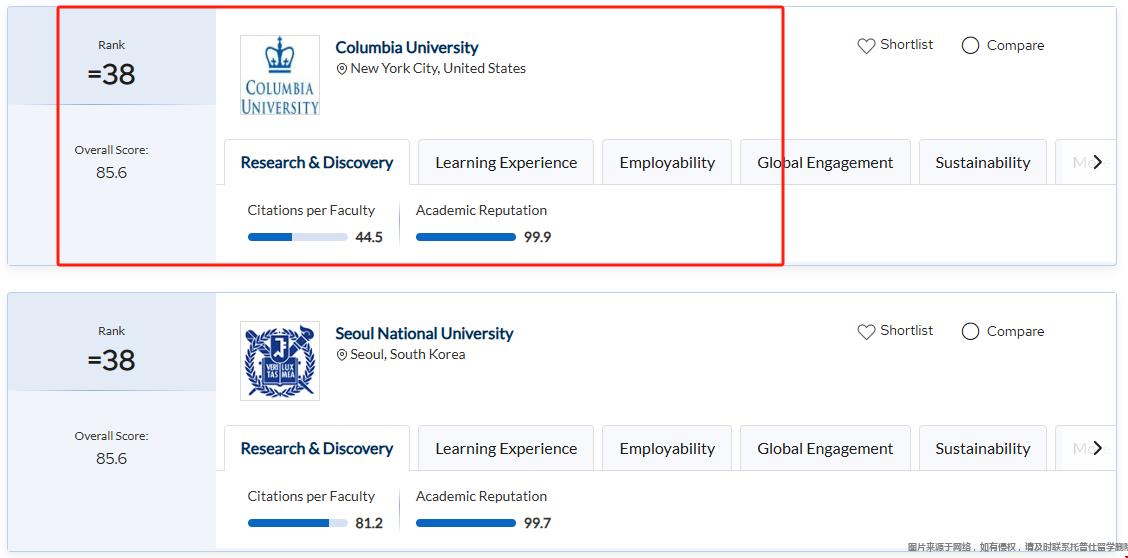 结合组新的QS排名来看,哥伦比亚大学2026QS世界排名又呈现了下滑趋势,排名第38位,达到了近十几年QS世界大学排名最低的一次。